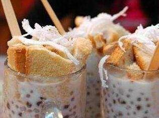 <p>泡魯達(dá)泡魯達(dá)是一道緬甸和泰國一帶非常有名的甜品,說是正宗的泡魯達(dá)配料多達(dá)十二種,但是必要的步驟說來也簡單,就是西米露、緬甸煉奶和牛奶的混合物泡上烤過的面包條,撒上新鮮椰絲而成。喝前攪拌均勻,讓面包條吸入汁液變得更加香甜,同時(shí)要趕在汁水被面包吸光之前狠嘬兩口——這資源的分布下永遠(yuǎn)藏著一個(gè)吃貨的矛盾哲學(xué)。</p>